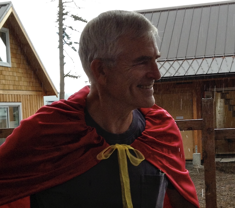Marvelous Marvin in his awarded cape after helping build the first three homes on Salish Way.