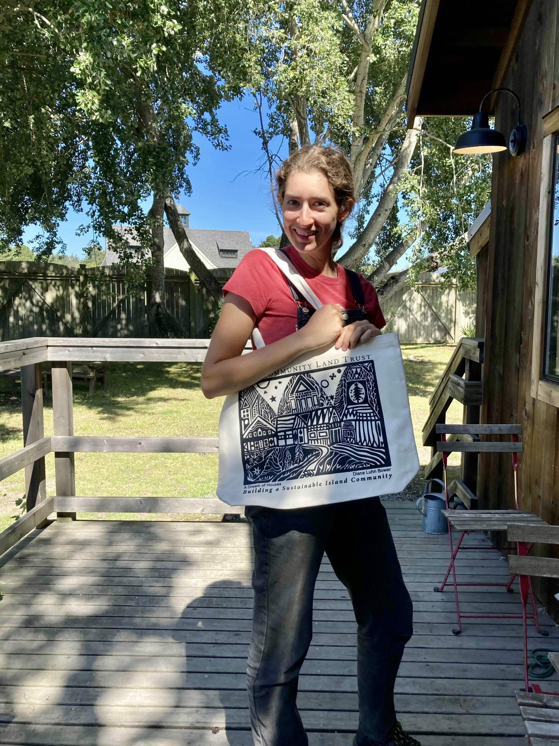 Canvas totes with the LCLT Logo featuring Diana Luhn Bower’s block print A Dream of Houses are exclusively available for purchase at Chimera Gallery in the Lopez Village for $20.